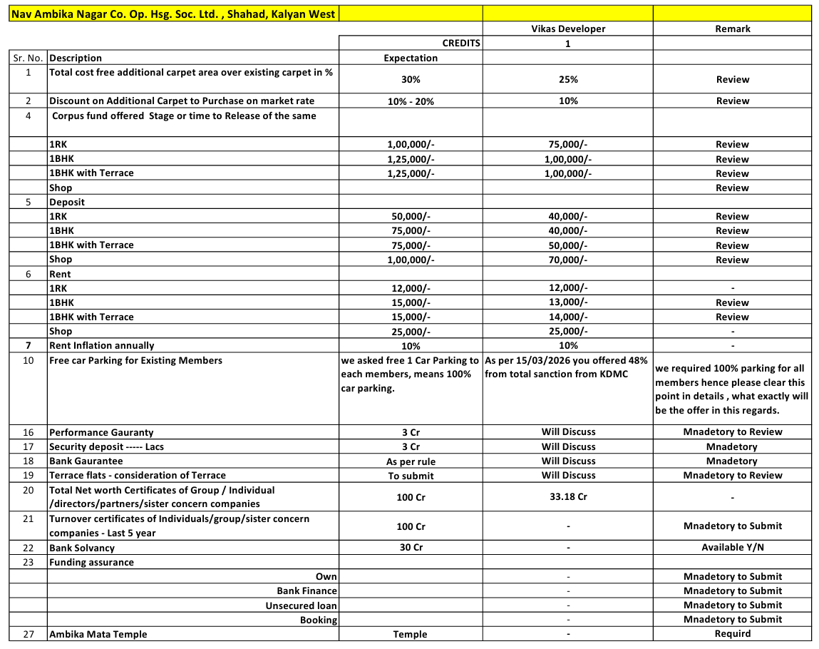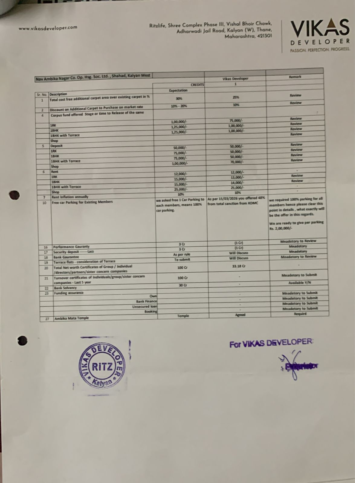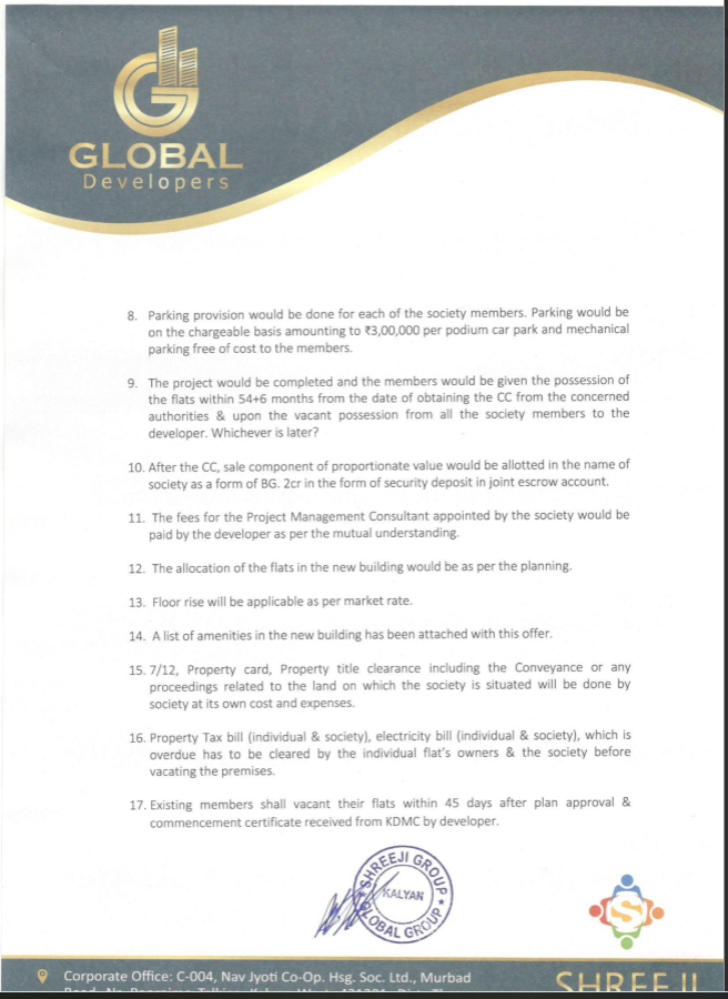 Revised offer Vikas Developers & Global Developers
