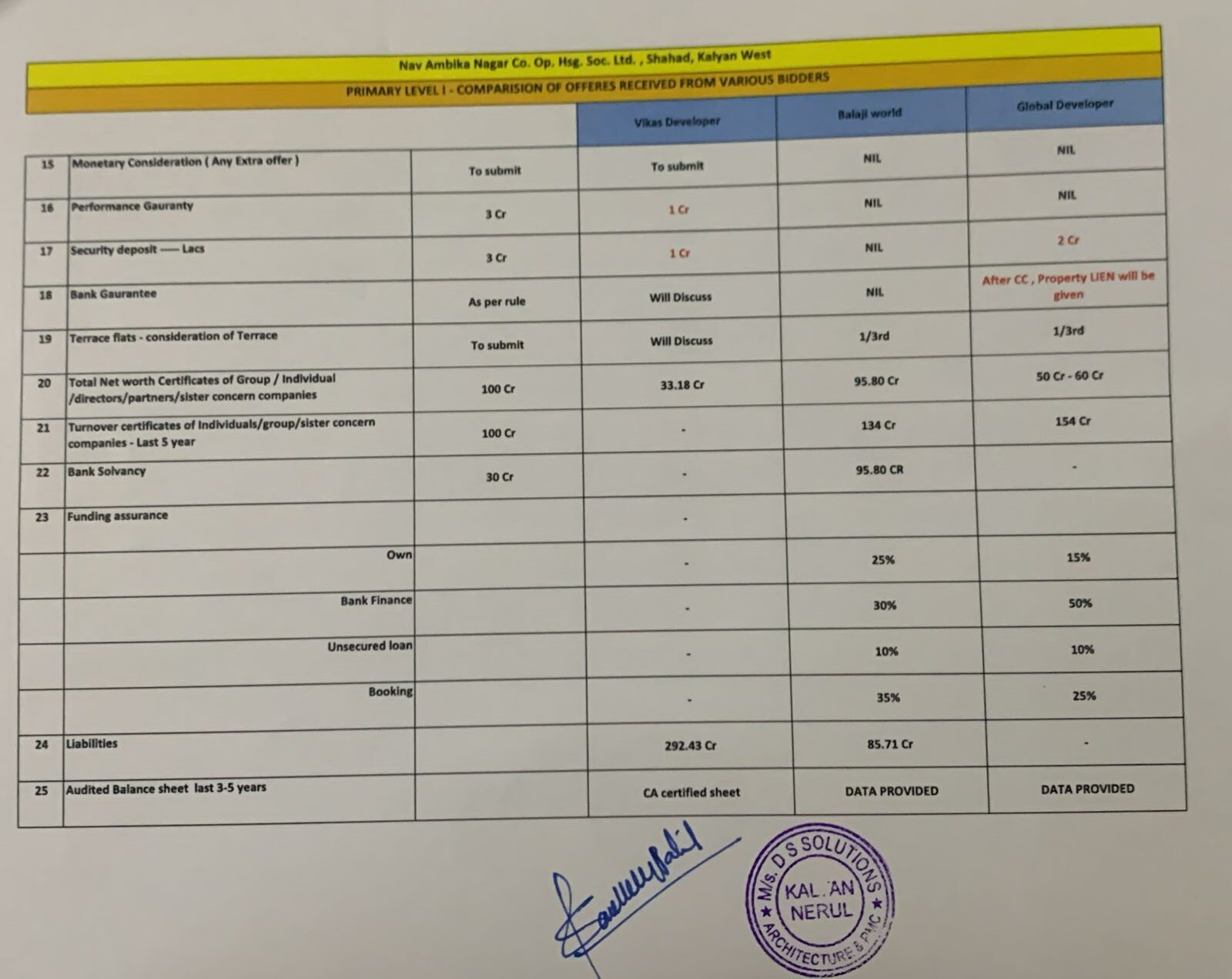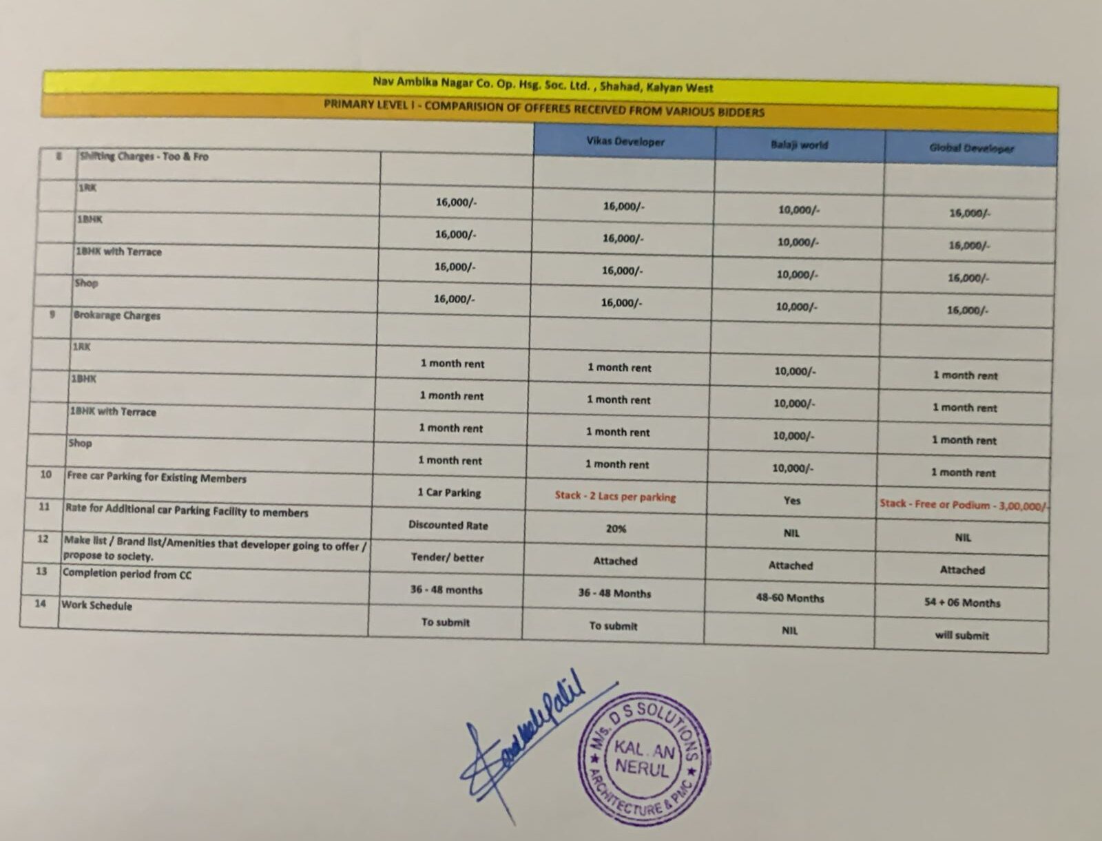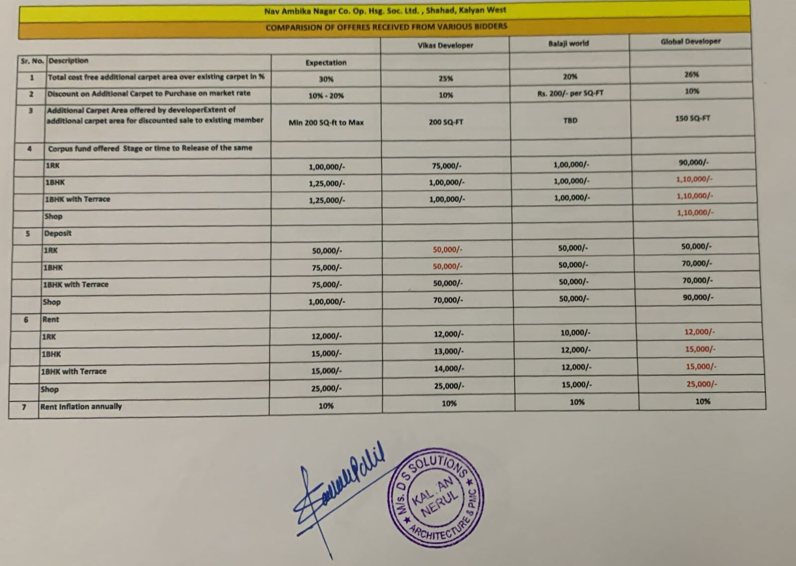 Revised offer Vikas Developers & Global Developers